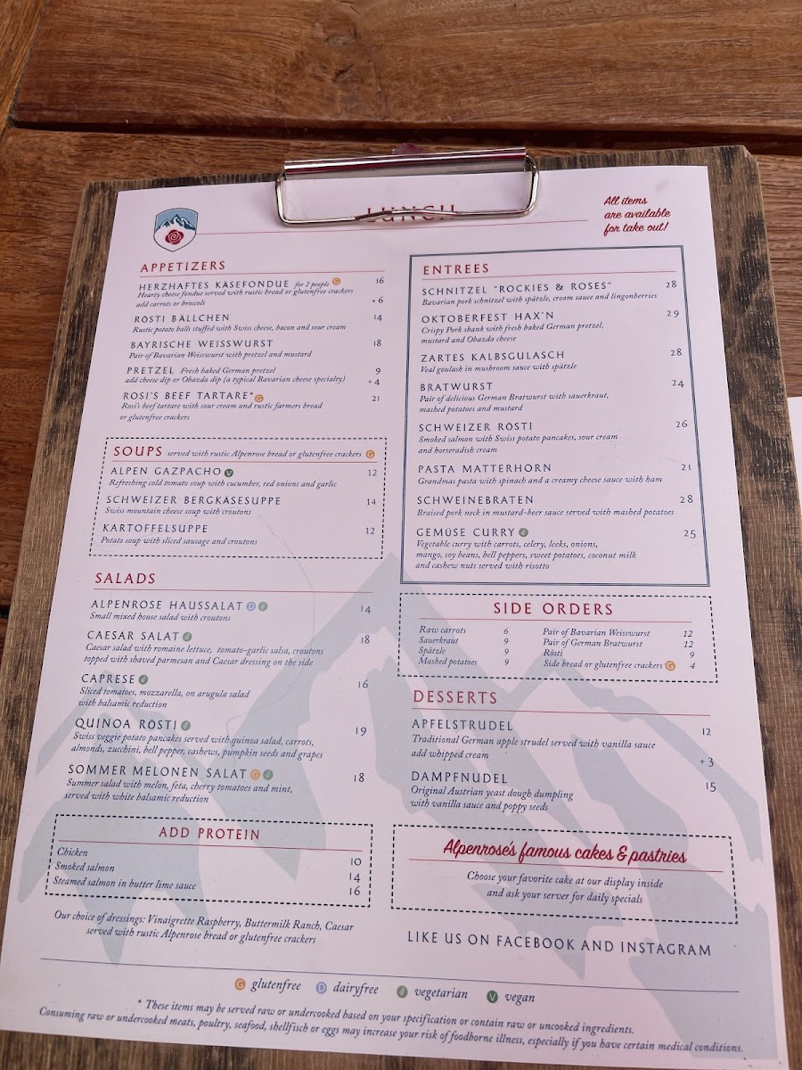 Welcome to Alpenrose Vail, an enchanting gem nestled in the heart of Vail Village. This delightful restaurant beautifully captures the charm of a European fairytale with its cozy alpine decor and warm atmosphere. The menu showcases a fusion of authentic flavors that transport you straight to Germany.